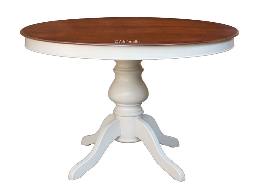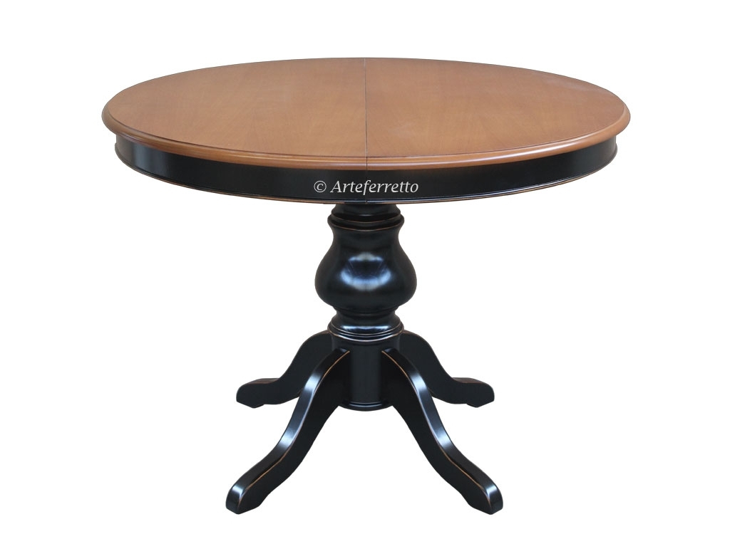 Tisch rund 110 cm ausziehbar durch eine Zusatzplatte im Zentrum von 38 cm.