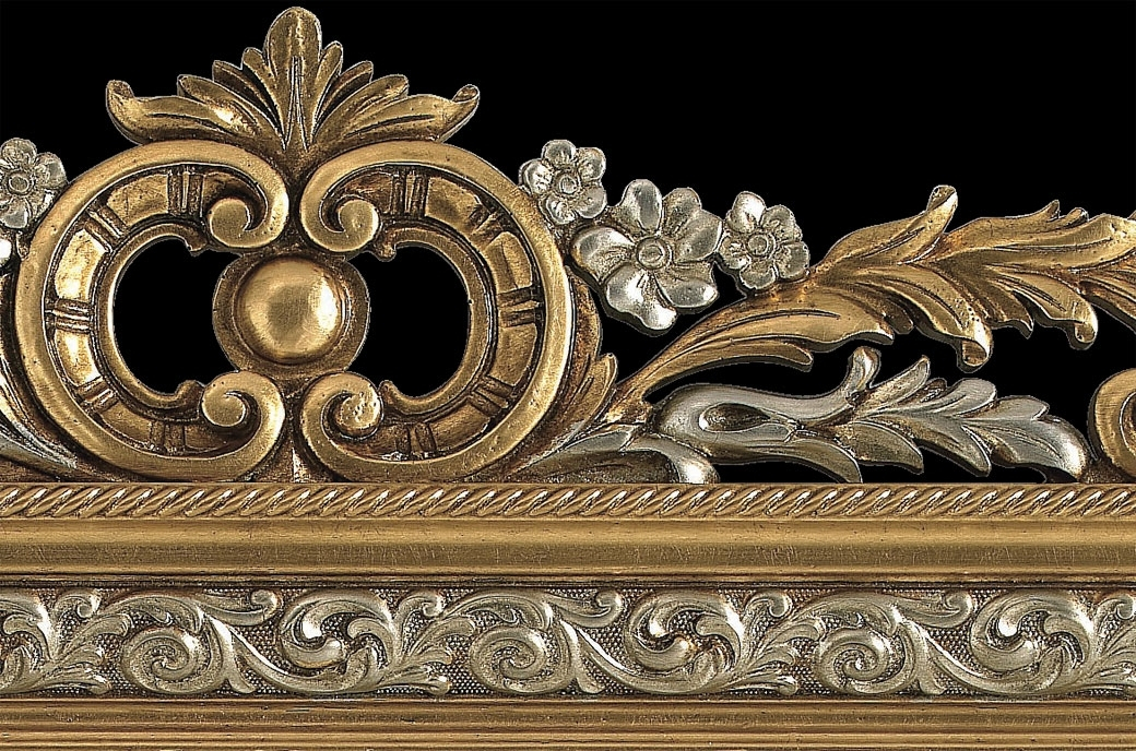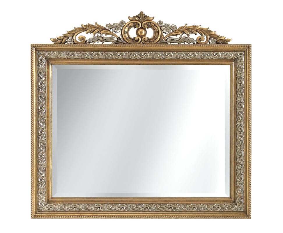 Der Spiegel ist sehr schön in allen Details und sehr fein. Das Blatt in gold oder silber hat eine leichte Patinierung, die das Möbelstück veraltet, wie ein Erinnerungsstück eines Schlosses. Der Spiegel ist sehr elegant gleichzeitig.