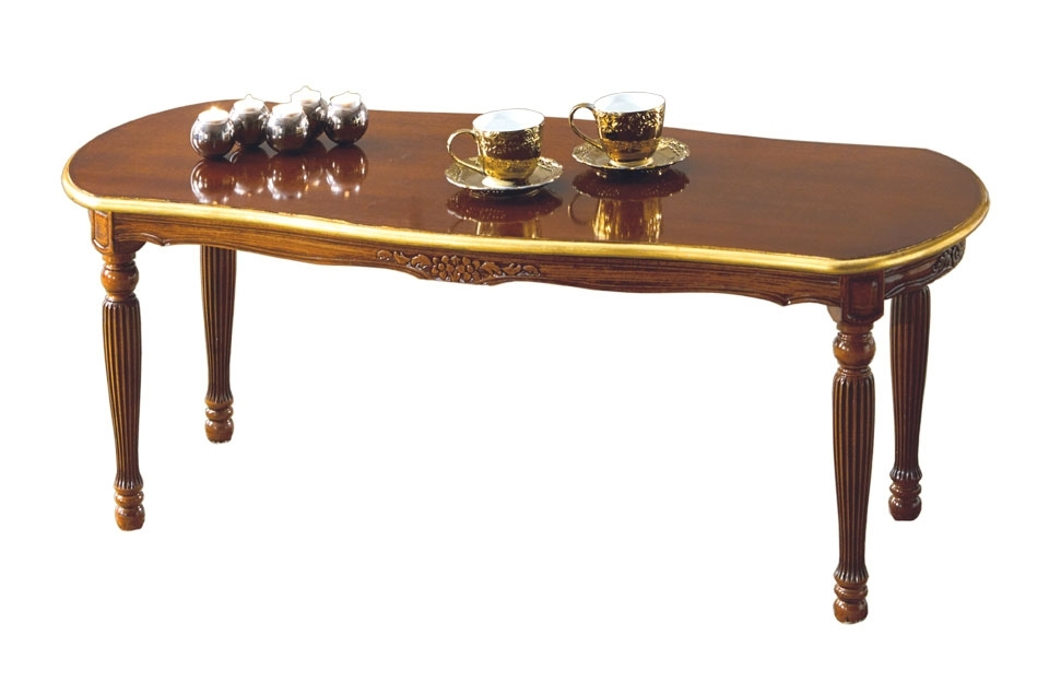 Ovaler Couchtisch mit Gold für Wohnzimmer im klassischen Stil. Die Tischplatte ist geräumig. Die Struktur ist aus Massiv-Buchenholz, also sehr stark. Die Besonderheit des Möbels ist die Linie der Beinen und der Tischplatte. Ovaler Couchtisch ideal mit einem Sofa oder ein paar Sessel. Couchtisch ovale Breite 119 cm mit goldenen Details. Das ist das perfekte Möbel, um Schönheit und Wert Ihrem Wohnzimmer zu geben. Einrichtung im Stil klassisch für Wohnraum.
