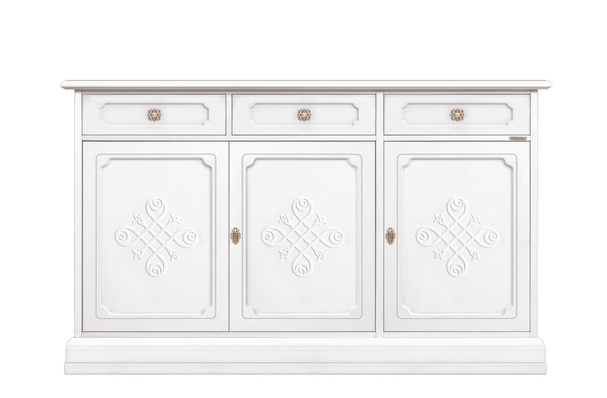 Das Sideboard mit Dekor ist eine schöne und praktische Anrichte: 3 Schranktüren und 3 geräumigen Schubladen sind sehr praktisch und geräumig.