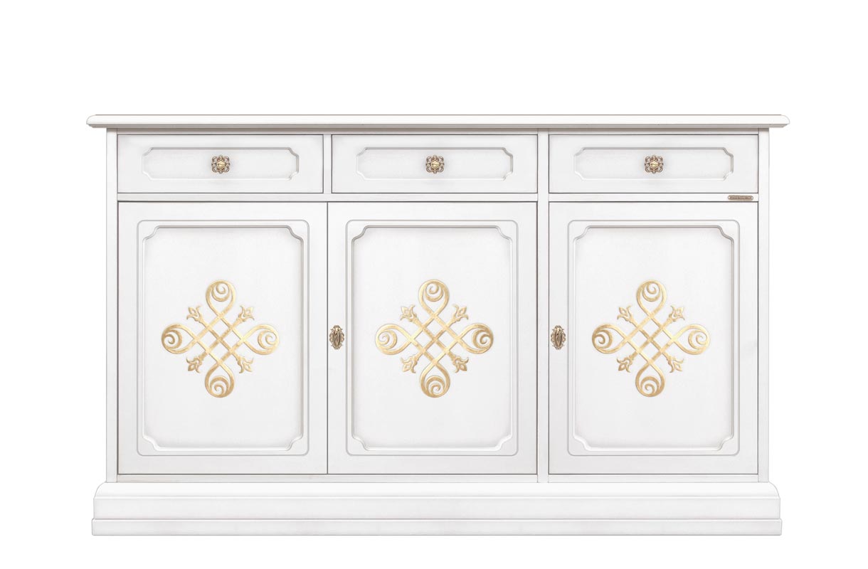 Das Luxus Sideboard ist so von der Holzgravur in der Tür gekennzeichnet. Durch den Beschlag ist das Möbel verschönert.