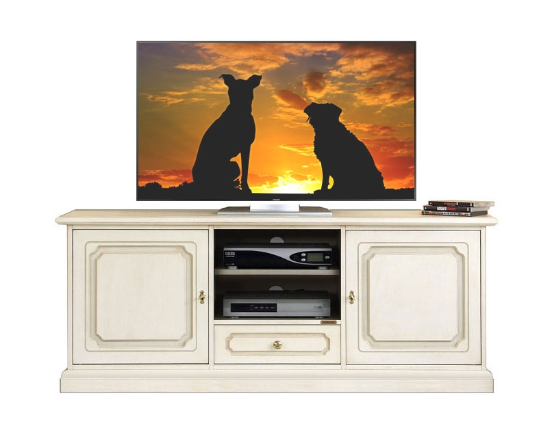 TV-Möbel mit Schubkästen mit Breite 2 m, gleichzeitig groß, praktisch aber elegant und fein.