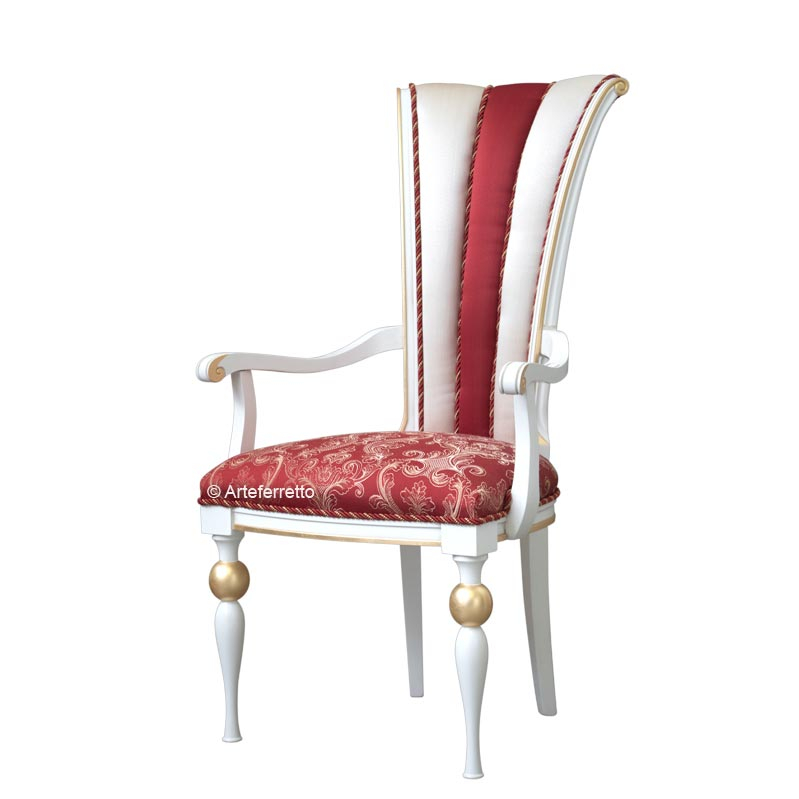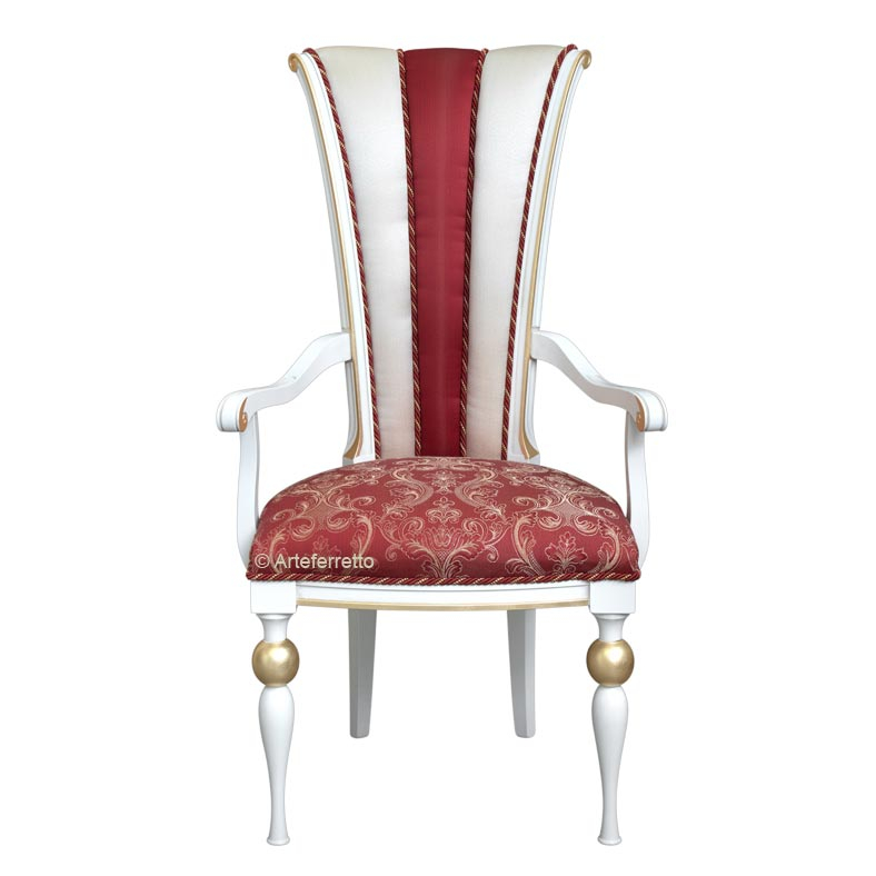 Schöner und eleganter Stuhl mit Armlehnen im klassischen Stil.