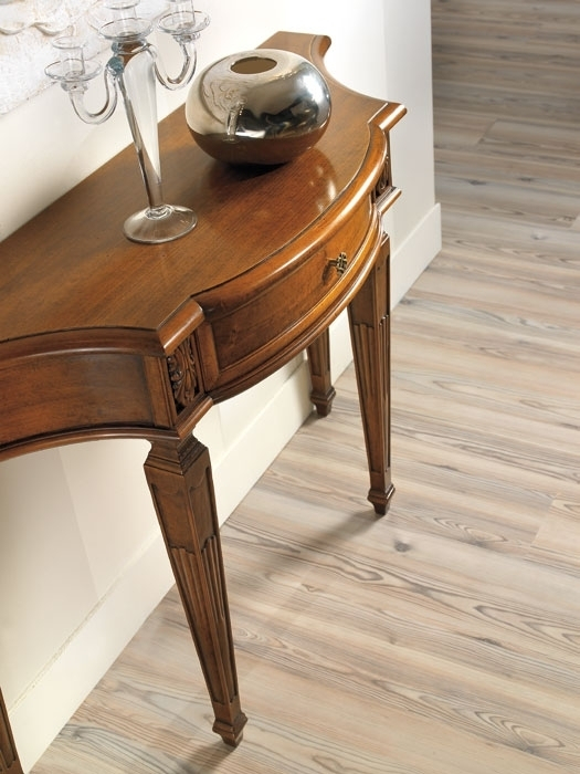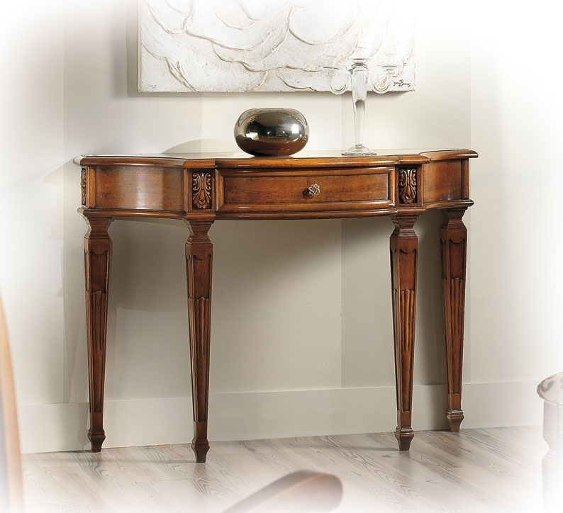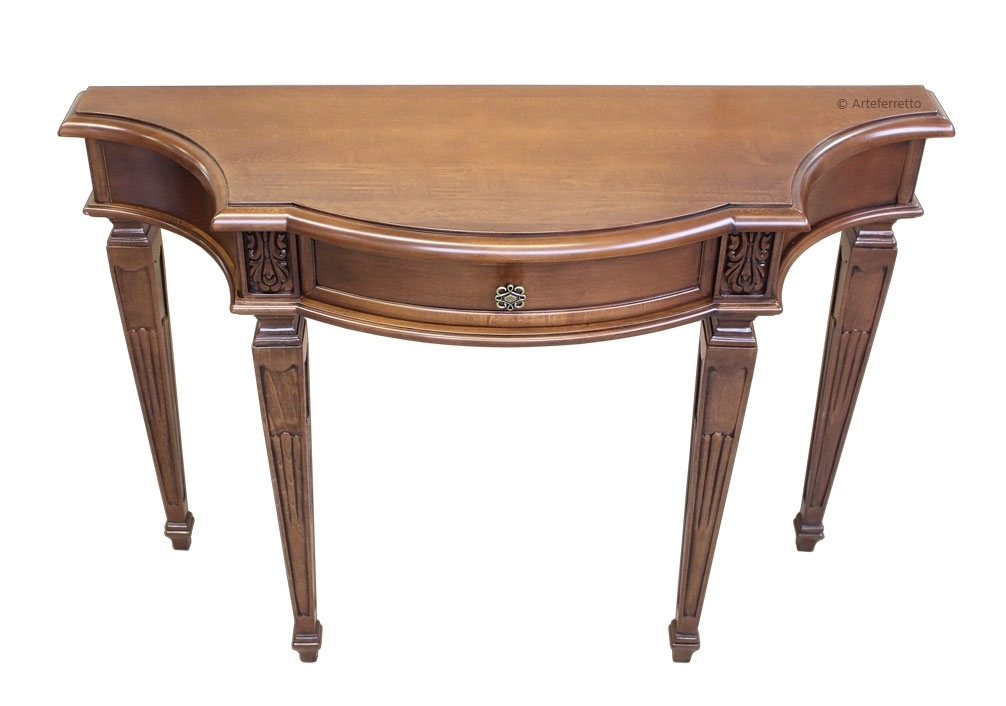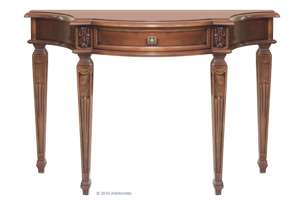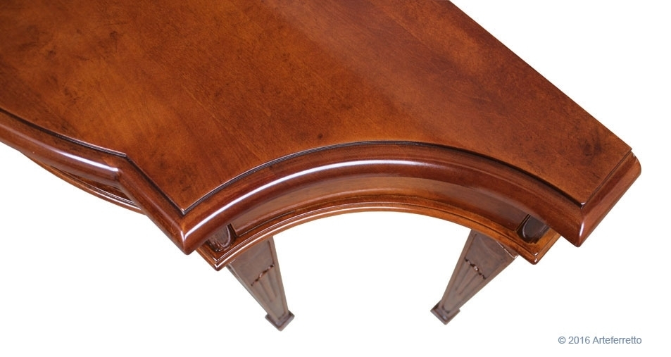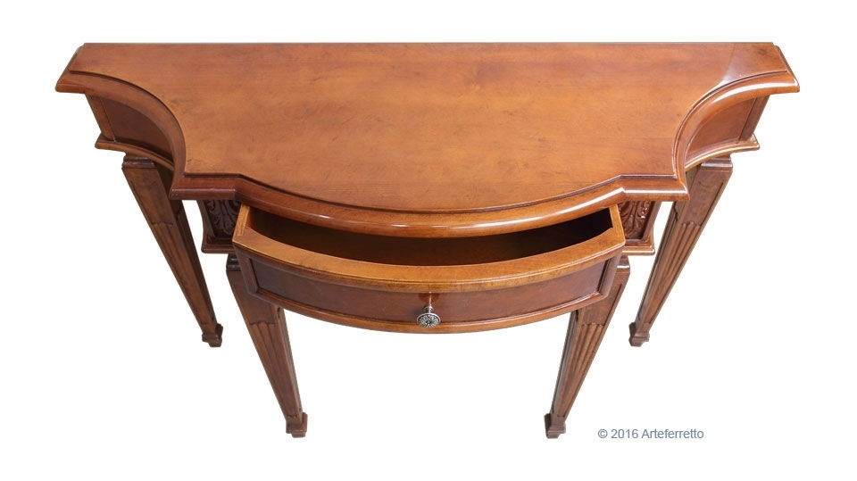 Schwarzer Konsolentisch 2 Schubladen, sehr schön mit einer profilierten Linie.Die Struktur ist schlicht und elegant, perfekt für jede Wohneinrichtung, z.B. mit einem Spiegel, einem Bild, usw.Das Möbel hat 2 Schubladen. Der Farbton ist auf dem Bild Schwarz antik: die Basis ist aus Kirschholz, dann wird die Schwarzlackierung gemacht und danach ist die Schleifung des Farbtons der Möbelkanten. Das Möbel ist also Schwarz und auch Kirschholz in den Kanten und im Inneren.Schwarzer Konsolentisch 2 Schubladen ideal für Wohnzimmer, Flur, Wartehalle, usw.Bei der Lieferung ist es schon montiert.Maße:Breite 96 cm;Höhe 80,5 cm;Tiefe 41 cm.