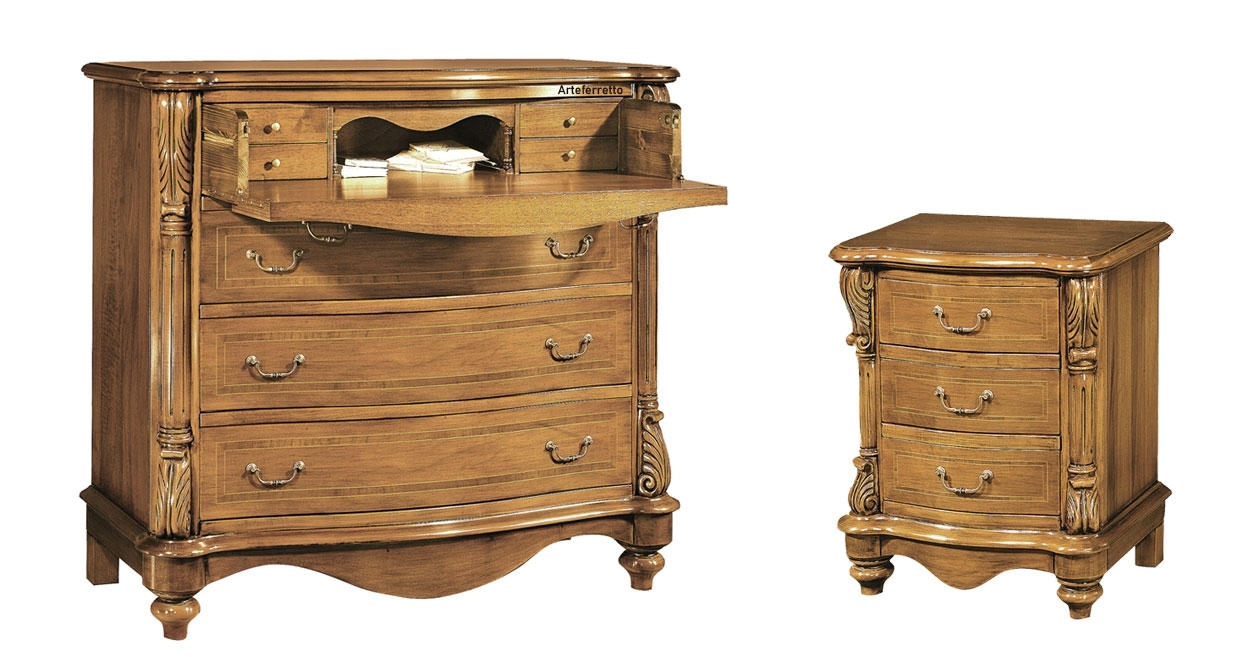 Schöne Klassische Kommode mit Klappe für das Schlafzimmer mit geräumigen Schubladen und einem Geheimfach.