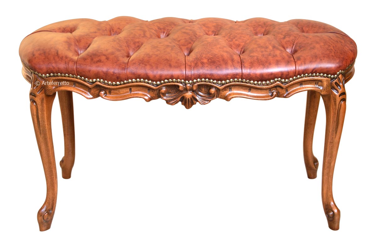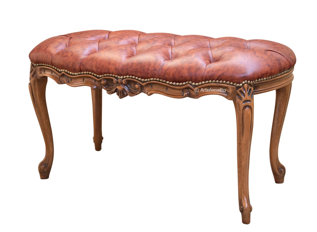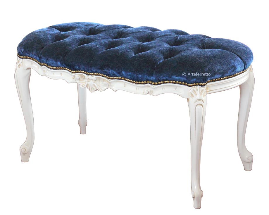 Sitzbank aus Holz im eleganten und italienischen Stil verarbeitet von Handwerkern, die die Holzstruktur lackiert, gepolstert und tapeziert haben.