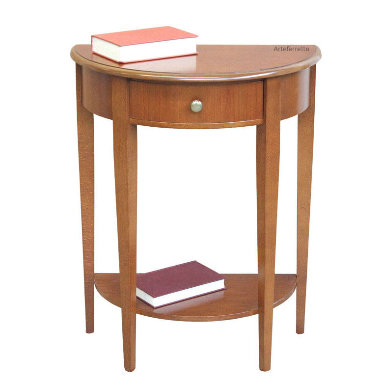 Schwarzer Konsolentisch 2 Schubladen, sehr schön mit einer profilierten Linie.Die Struktur ist schlicht und elegant, perfekt für jede Wohneinrichtung, z.B. mit einem Spiegel, einem Bild, usw.Das Möbel hat 2 Schubladen. Der Farbton ist auf dem Bild Schwarz antik: die Basis ist aus Kirschholz, dann wird die Schwarzlackierung gemacht und danach ist die Schleifung des Farbtons der Möbelkanten. Das Möbel ist also Schwarz und auch Kirschholz in den Kanten und im Inneren.Schwarzer Konsolentisch 2 Schubladen ideal für Wohnzimmer, Flur, Wartehalle, usw.Bei der Lieferung ist es schon montiert.Maße:Breite 96 cm;Höhe 80,5 cm;Tiefe 41 cm.