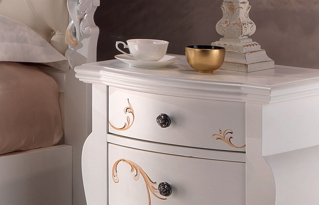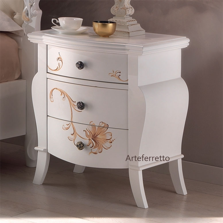 Kleine Kommode Blumenmotiv mit einer profilierten Linie und 3 Schubkästen. Das Möbel passt gut zu jeder Einrichtung und jedem Beschlag. Bei der Lieferung ist die kleine Kommode mit Dekor schon montiert. Die Kommode ist verschönert von dem Blumenmotiv sehr fein und romantisch. Das ist ein Möbel klassisch romantisch ideal für ein Schlafzimmer, das eine Kommode niedrig aus Holz mit Füße nötigt. Kleine Kommode Blumenmotiv mit Füße ist ein Möbelstück hergestellt und handlackiert von spezialisierten Handwerkern. Einrichtung Made in Italy hochwertig und wunderschön!