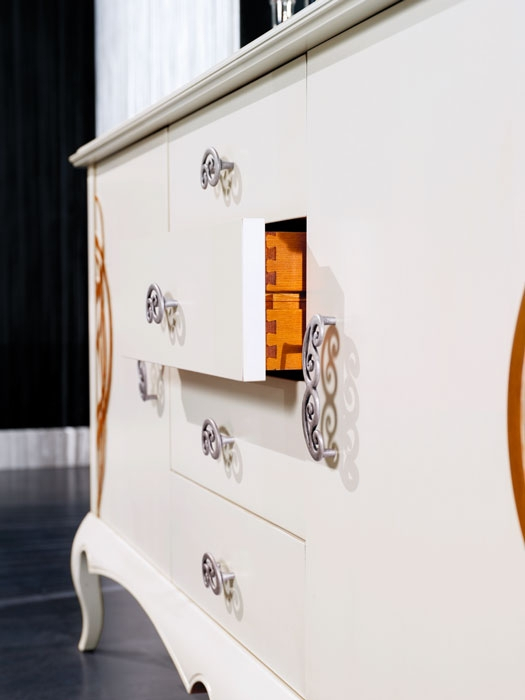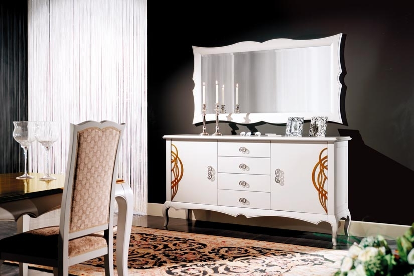 Schöne und elegante Anrichte mit Blattgold für eine elegante Wohnung.Die Lackierung ist durch Details in Blattgold verschönt, die den Schnitzarbeit gut darstellen.Eine große Besonderheit des Möbels ist Ihr Fassungsvermögen.Große Fächer stehen mit einem beweglichen Einlegeboden in den Türen. Die Anrichte hat einen zentralen Schublade.Klassisches Design und Stil für ein Möbel, das nie den Einfluss der Mode befolgt.Bei der Lieferung ist das Möbel schon montiert. Anrichte mit Blattgold ideal für Wohnzimmer.Maße:- Gesamt: B177 x T57,8 x H91,3 cm- Innenschubkasten cm B47 x T42 x H11,4 (Außen-Breite cm 49,7)- Seitliche Türen cm B49,3 x H60,2- Zentrale Tür cm B49,7 x H44,5