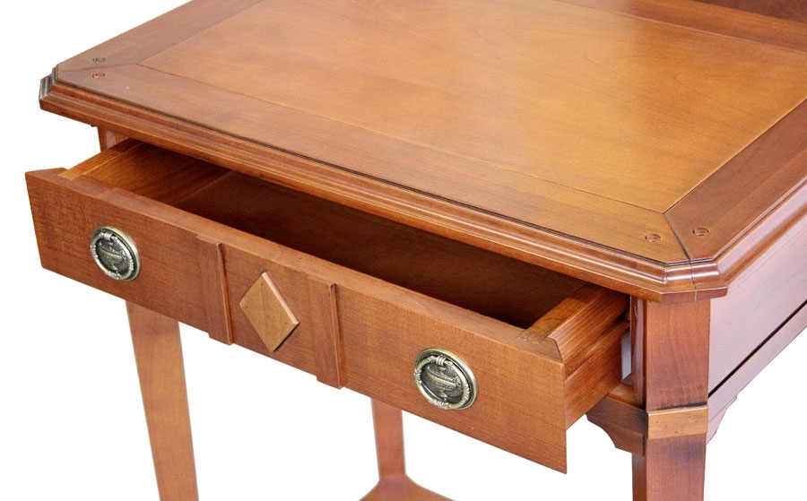 Schwarzer Konsolentisch 2 Schubladen, sehr schön mit einer profilierten Linie.Die Struktur ist schlicht und elegant, perfekt für jede Wohneinrichtung, z.B. mit einem Spiegel, einem Bild, usw.Das Möbel hat 2 Schubladen. Der Farbton ist auf dem Bild Schwarz antik: die Basis ist aus Kirschholz, dann wird die Schwarzlackierung gemacht und danach ist die Schleifung des Farbtons der Möbelkanten. Das Möbel ist also Schwarz und auch Kirschholz in den Kanten und im Inneren.Schwarzer Konsolentisch 2 Schubladen ideal für Wohnzimmer, Flur, Wartehalle, usw.Bei der Lieferung ist es schon montiert.Maße:Breite 96 cm;Höhe 80,5 cm;Tiefe 41 cm.