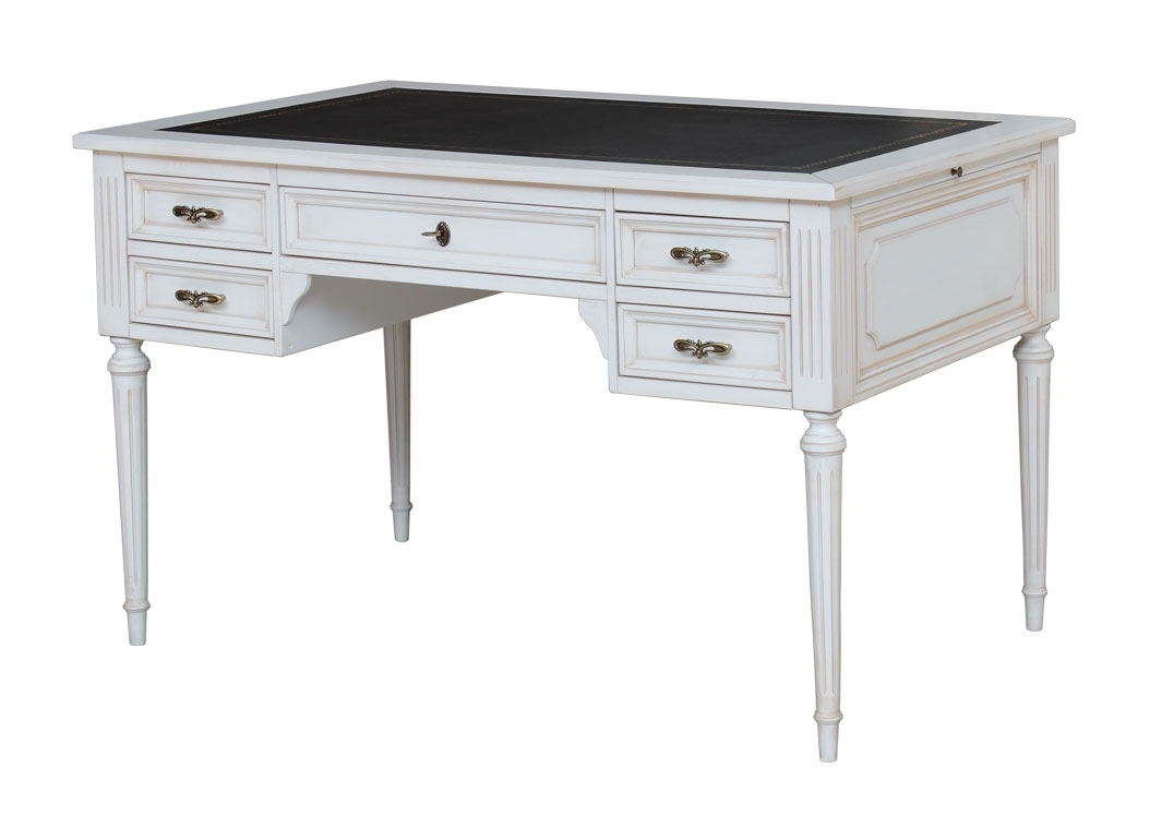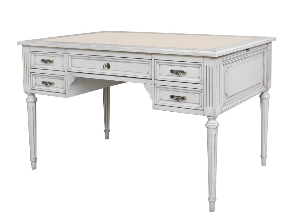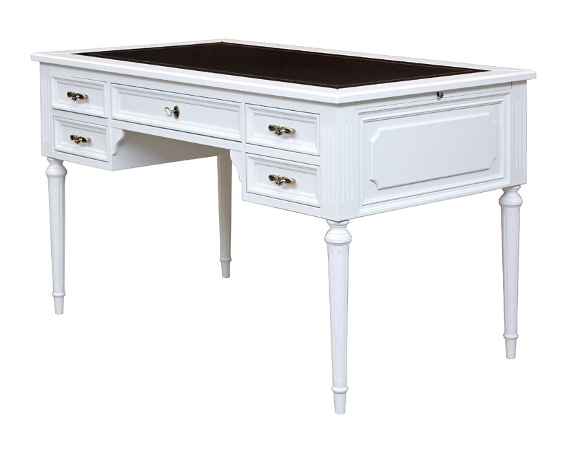 Erstklassiger Schreibtisch weiß mit Lederplatte mit 5 Schubkästen aus XVI Ludwig Stil.