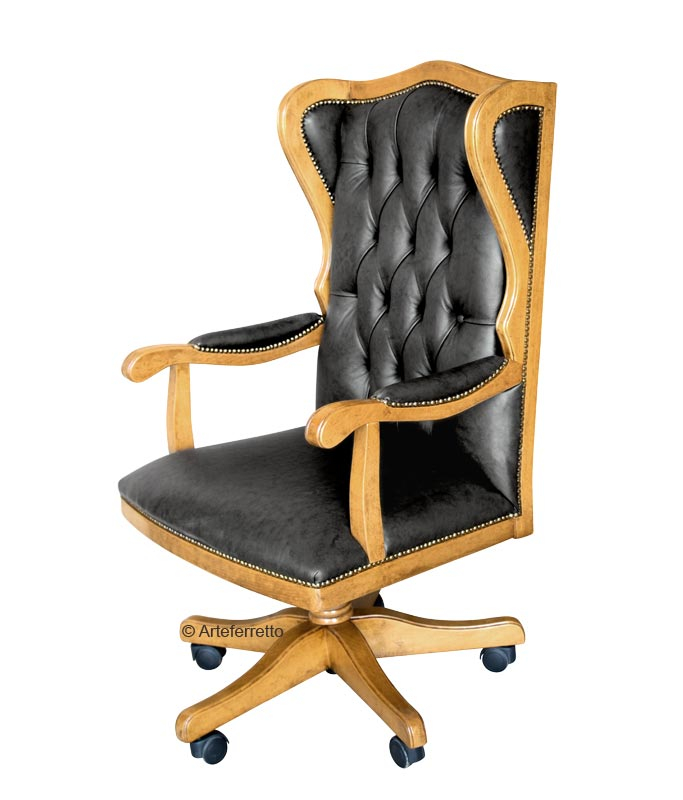 Die starke Struktur ist aus Massiv-Buchenholz. Der Ledersessel drehbar ist sehr praktisch mit den Rädern und die Höhe des Sitzes ist regulierbar.