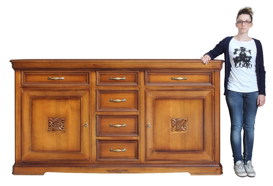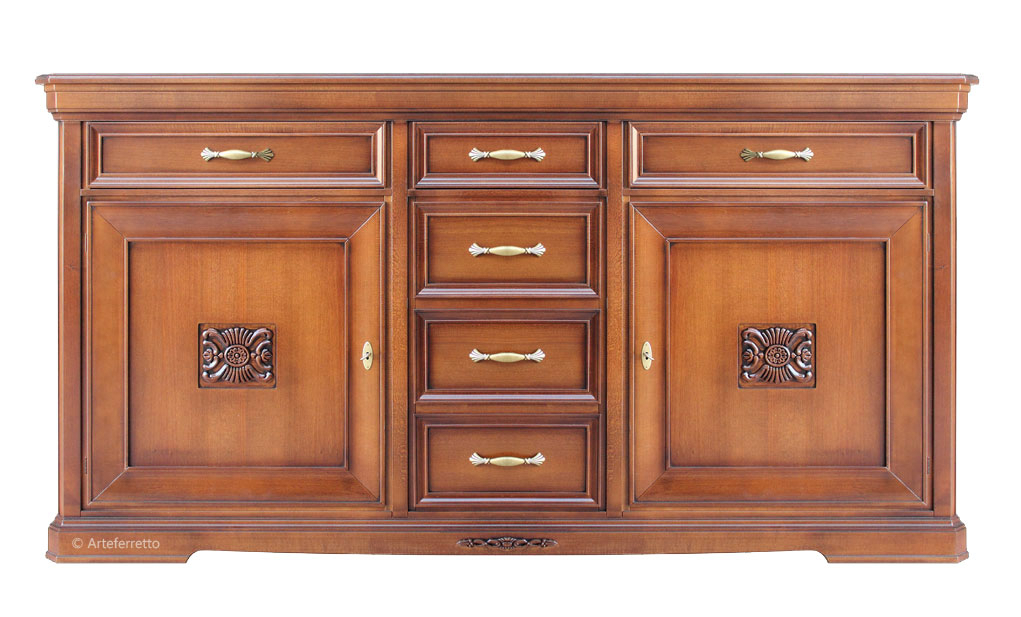 Schöne und elegante Anrichte mit Blattgold für eine elegante Wohnung.Die Lackierung ist durch Details in Blattgold verschönt, die den Schnitzarbeit gut darstellen.Eine große Besonderheit des Möbels ist Ihr Fassungsvermögen.Große Fächer stehen mit einem beweglichen Einlegeboden in den Türen. Die Anrichte hat einen zentralen Schublade.Klassisches Design und Stil für ein Möbel, das nie den Einfluss der Mode befolgt.Bei der Lieferung ist das Möbel schon montiert. Anrichte mit Blattgold ideal für Wohnzimmer.Maße:- Gesamt: B177 x T57,8 x H91,3 cm- Innenschubkasten cm B47 x T42 x H11,4 (Außen-Breite cm 49,7)- Seitliche Türen cm B49,3 x H60,2- Zentrale Tür cm B49,7 x H44,5