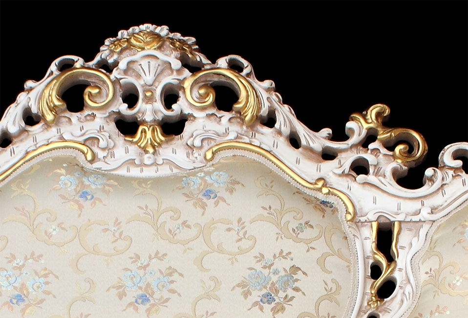 Die Struktur ist aus Buchenholz und ist durch Schnitzarbeit und Blattgold und Blattsilber verschönt.