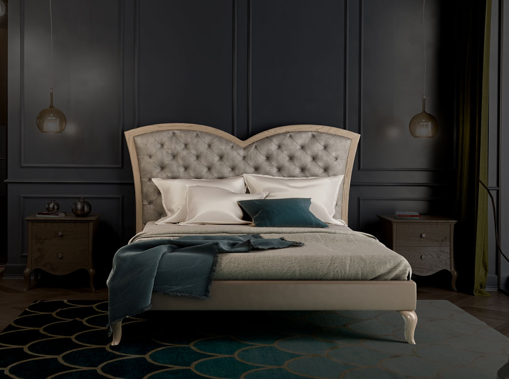 Bett mit gepolstertem Kopfteil gepolstert und tapeziert von spezialisierten Handwerkern.