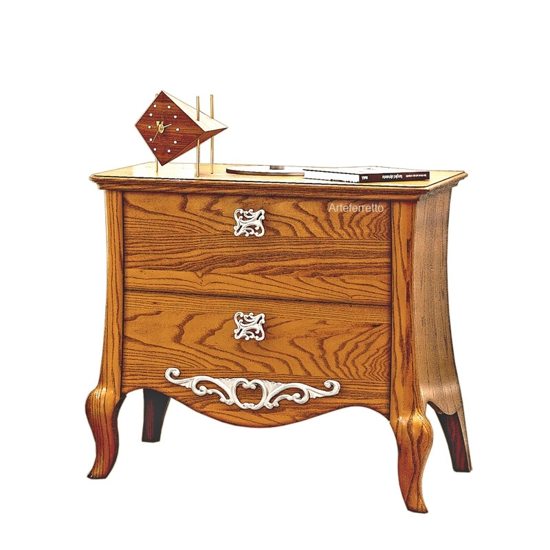 Nachttisch mit Füßen klassisch modern aus Holz. Starke haltbare Struktur aus Holz verarbeitet von spezialisierten Handwerkern. Die Füßen ist aus Massivholz, um Haltbarkeit dem Möbel zu geben. Nachttisch modern klassisch aus Holz mit 2 geräumigen Schubladen verschönert von besonderen Knöpfen. Die Besonderheit des Nachttisches ist die Verzierung geschnitzt und elegant im Unterteil. Nachttisch mit Füßen perfekt für Schlafzimmer im Stil klassisch modern. Die Naturfarbe hob Holz und sein Fladern hervor. Möbel modern Design im zeitlosen Stil ideal für wen eine einzigartige Einrichtung möchtet. Bei der Lieferung ist der Nachttisch schon montiert.