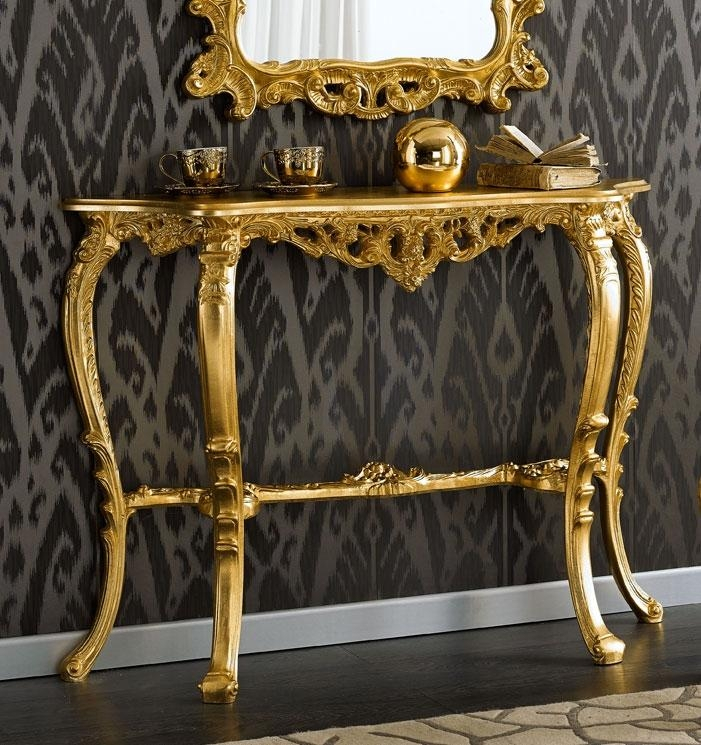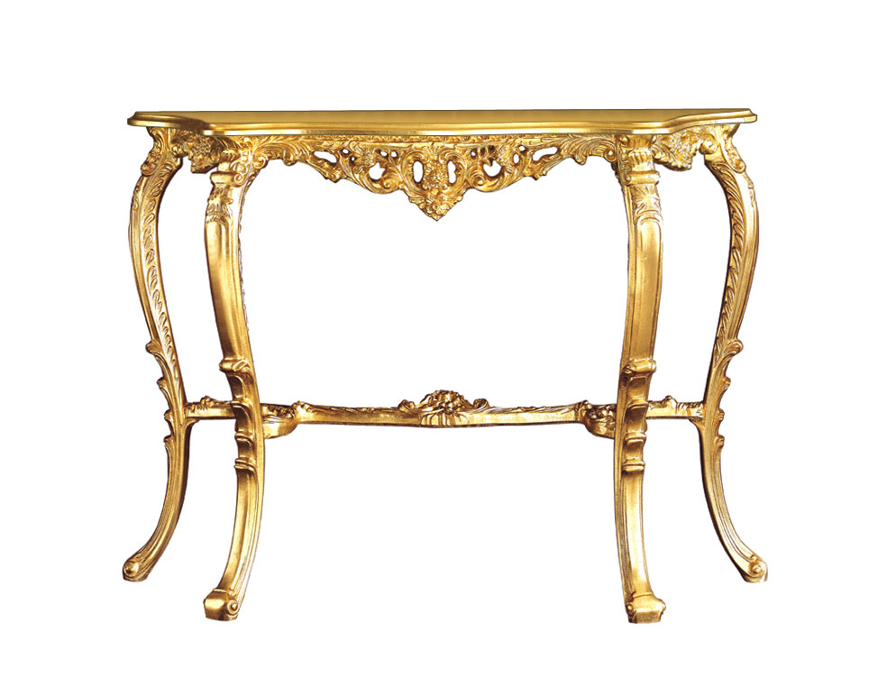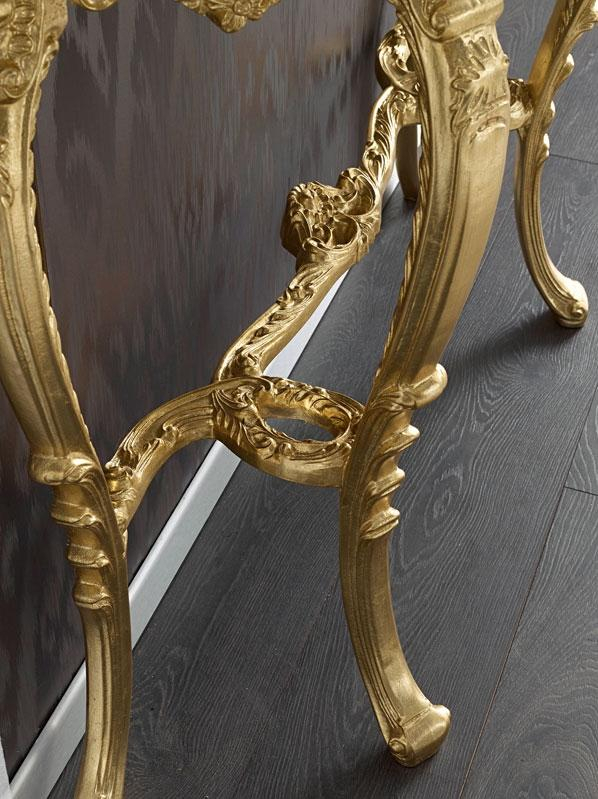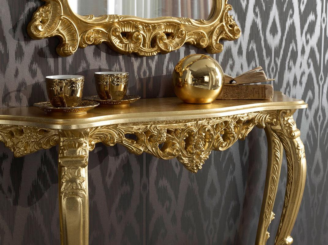 Bei der Lieferung ist der Konsolentisch mit Blattgold schon montiert.