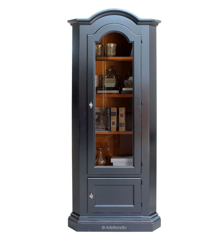 Eckschrank mit Glastür und dekorierter Tür
