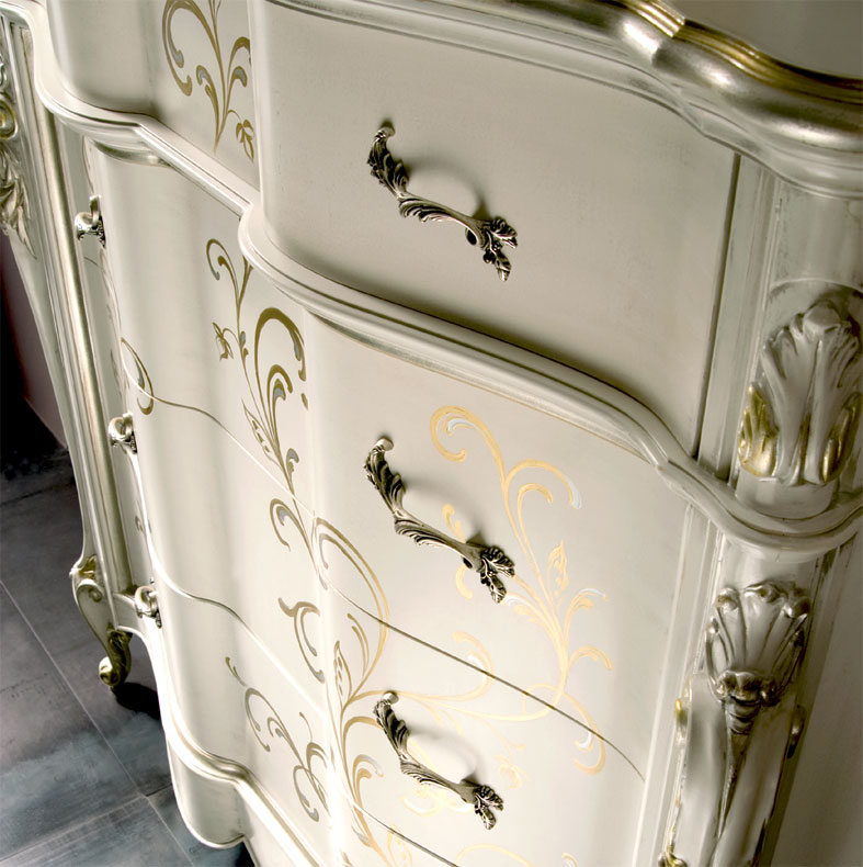 Die Besonderheit dieser Kommode aus Holz sind die Details verarbeitet mit Sorgfalt von spezialisierten Handwerkern, die auch das Möbel Kommode lackiert haben.
