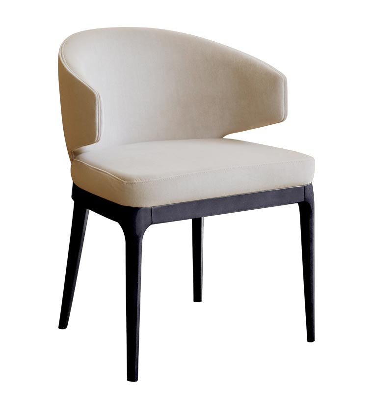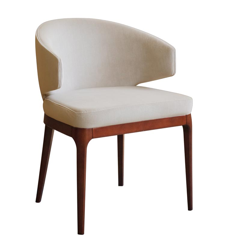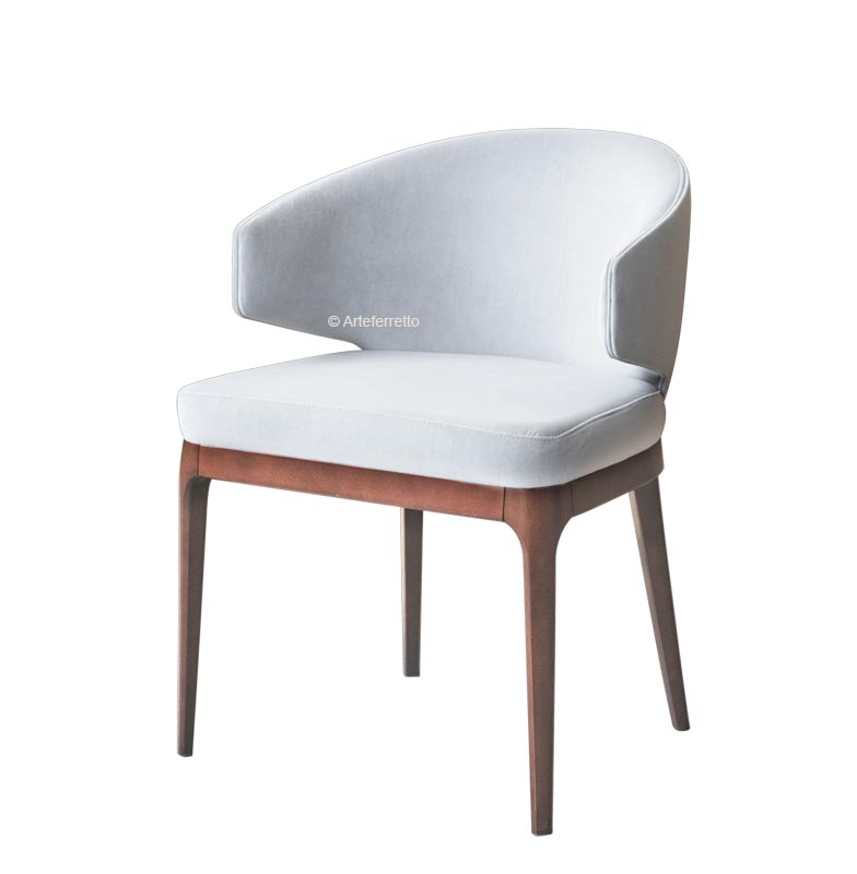 Origineller Design Dessel mit einem einfachen Rahmen. Die Besonderheit ist die schöne Rücklehne, die zusammen mit Armlehnen verbunden ist.