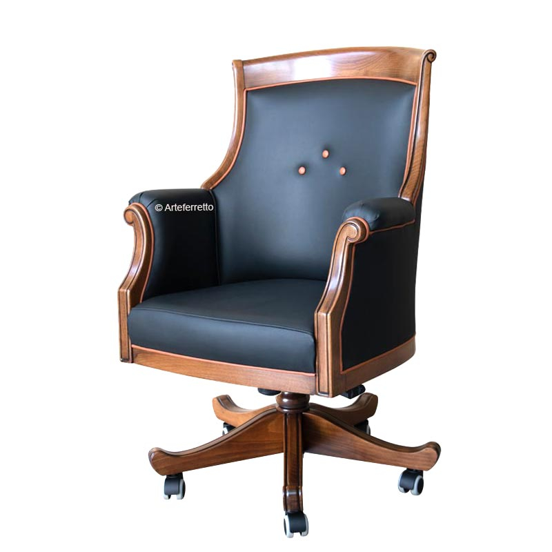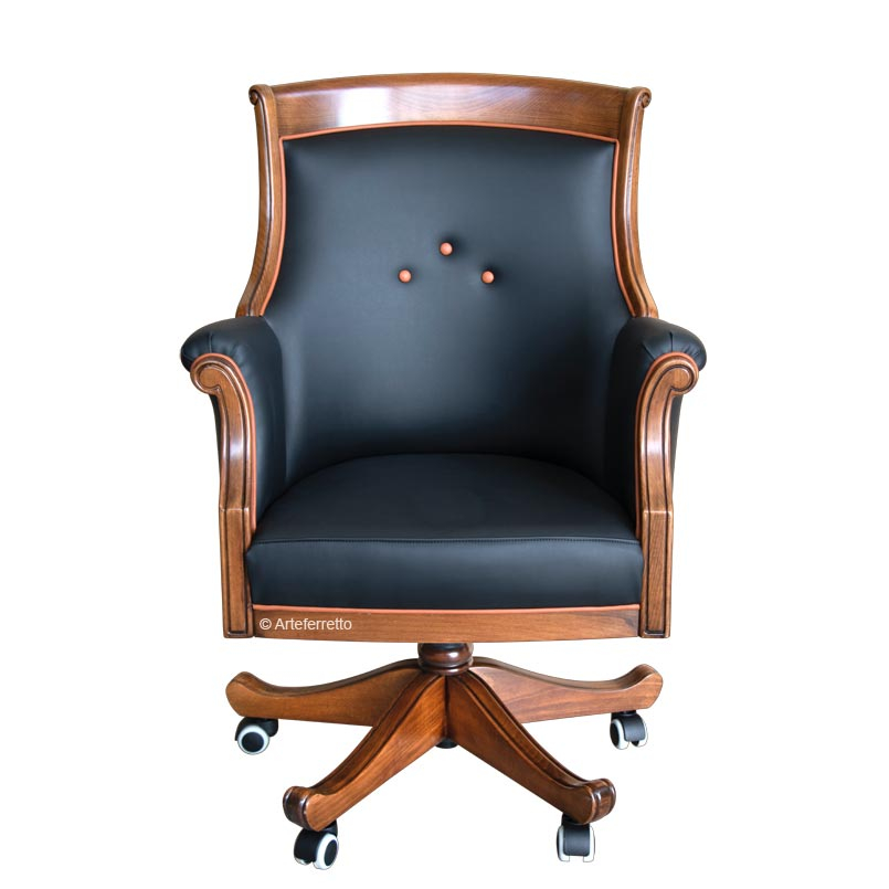 Klassischer Drehsessel mit Rollen verarbeitet in Italien und er ist höhenverstellbar und neigbar (Rücklehne und Sitz zusammen).