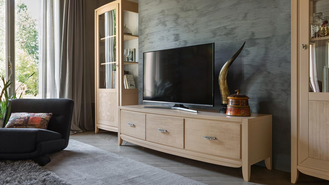 TV-Möbel aus Holz in modern Design verarbeitet von spezialisierten Handwerkern, die Ihnen ein schönes und praktisches Möbel anbieten möchten, das ist warum dies Möbel ein Beispiel der Handarbeit unseren Handwerkern ist.