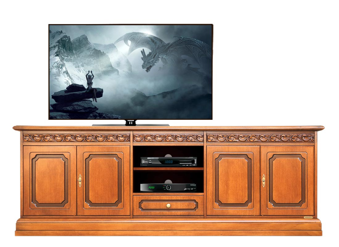 TV-Möbel mit Schubkästen mit Breite 2 m, gleichzeitig groß, praktisch aber elegant und fein.