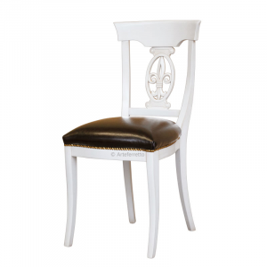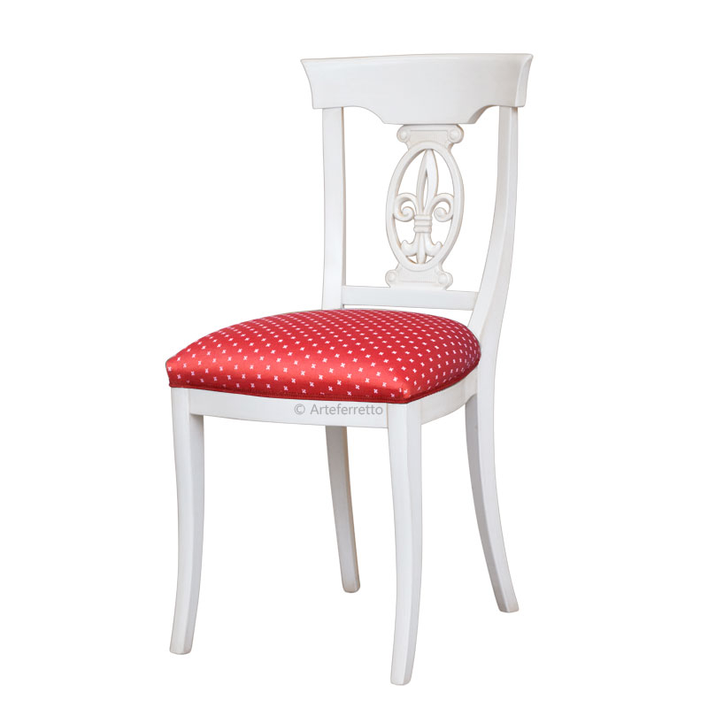 Der Stuhl hat gleichzeitig ein starkes und elegantes Gestell. Die Rückenlehne, die Armlehnen und der Sitz sind aus Stoff verkleidet. Die Besonderheiten dieses Stuhls sind die elegante und klassische Linie mit der Schnitzarbeit und den Bezug, die die hohe Qualität und den Preis zusammengestellt.