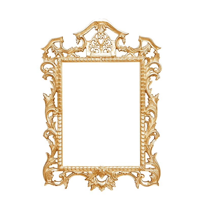 Wunderschöner Spiegel rechteckig Lovelock aus Holz verfügbar in Blattgold oder Blattsilber.