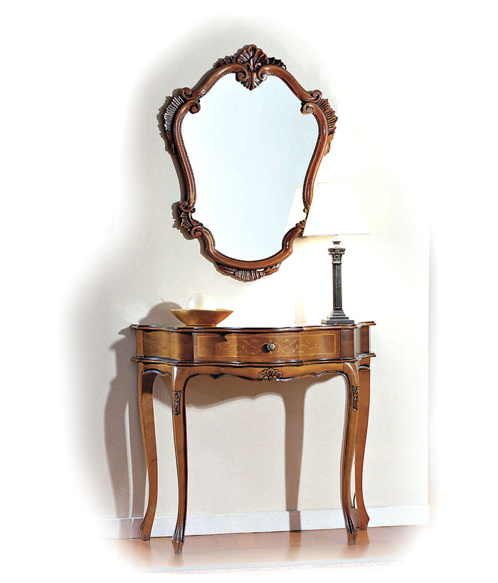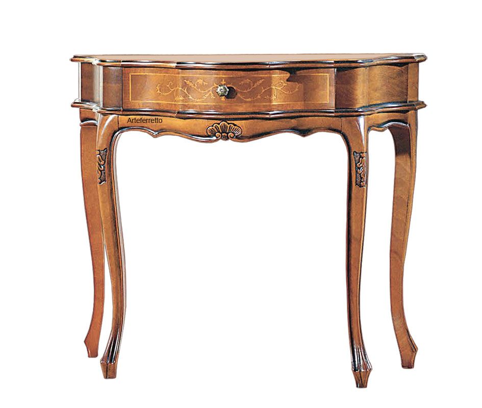 Schwarzer Konsolentisch 2 Schubladen, sehr schön mit einer profilierten Linie.Die Struktur ist schlicht und elegant, perfekt für jede Wohneinrichtung, z.B. mit einem Spiegel, einem Bild, usw.Das Möbel hat 2 Schubladen. Der Farbton ist auf dem Bild Schwarz antik: die Basis ist aus Kirschholz, dann wird die Schwarzlackierung gemacht und danach ist die Schleifung des Farbtons der Möbelkanten. Das Möbel ist also Schwarz und auch Kirschholz in den Kanten und im Inneren.Schwarzer Konsolentisch 2 Schubladen ideal für Wohnzimmer, Flur, Wartehalle, usw.Bei der Lieferung ist es schon montiert.Maße:Breite 96 cm;Höhe 80,5 cm;Tiefe 41 cm.