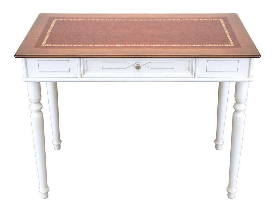 Zweifarbiger Schreibtisch mit Holzgravur und Lederplatte