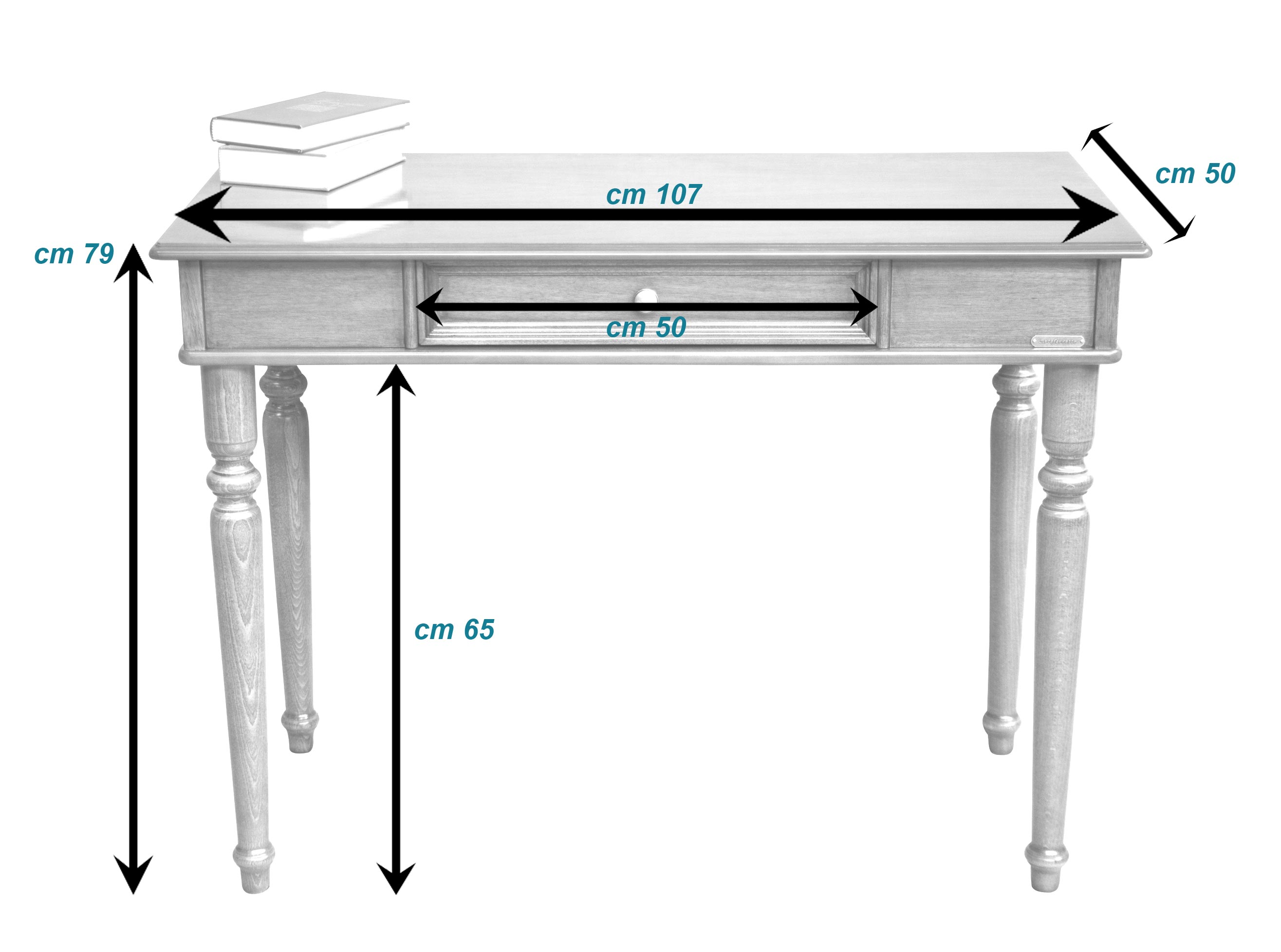 Er hat eine geräumige Schublade und eine praktische Tischplatte mit Leder, gedrechselte Beine, Struktur aus MDF mit Tanganijka-Nussbaumholz plattiert .