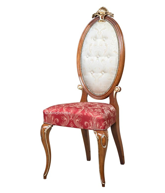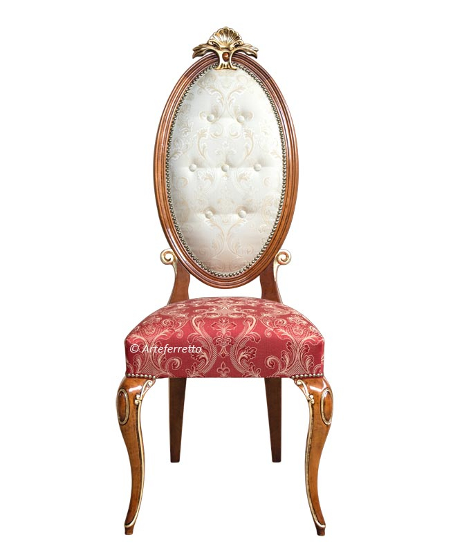 Das lackierte Finish hervorhebt die Details in Gold- und Silberblatt: die beste Verzierung für die elegante Struktur dises Stuhls.