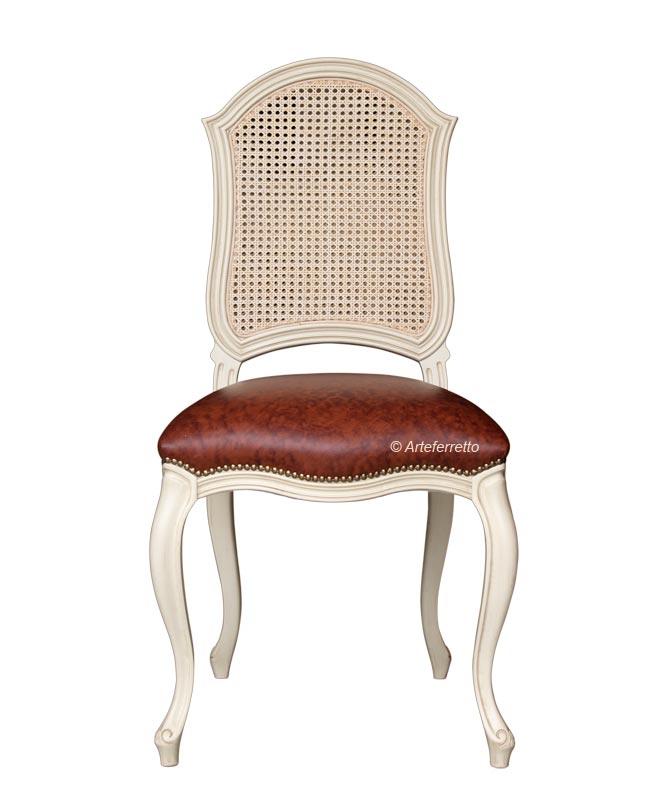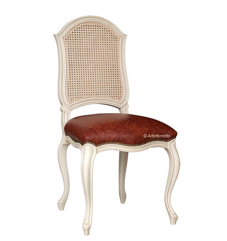 Der Stuhl hat gleichzeitig ein starkes und elegantes Gestell. Die Rückenlehne, die Armlehnen und der Sitz sind aus Stoff verkleidet. Die Besonderheiten dieses Stuhls sind die elegante und klassische Linie mit der Schnitzarbeit und den Bezug, die die hohe Qualität und den Preis zusammengestellt.
