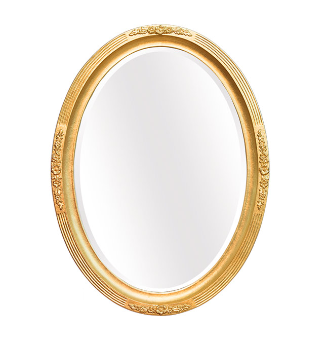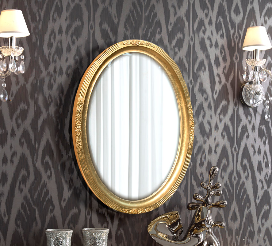 Ovaler Spiegel mit Schnitzereien und Blattgold