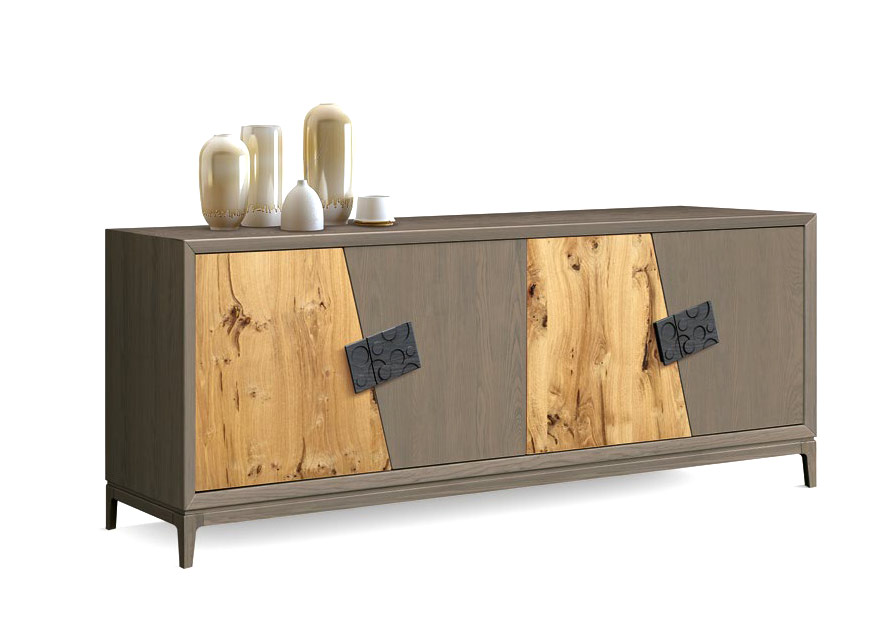 Zeitgenössisches Sideboard Nature - Griffe mit geschnitztem Kreismuster