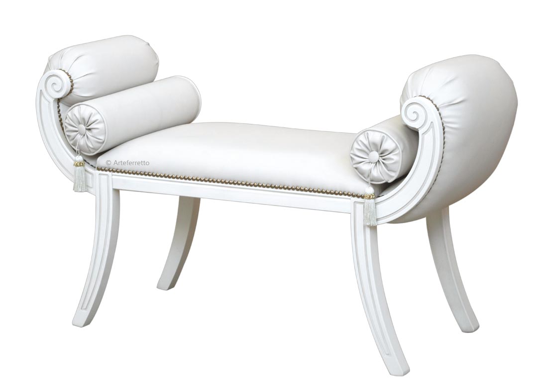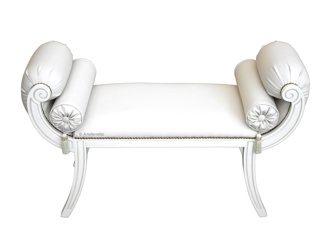 Das Gestell aus massivem Buchenholz ist solide und gleichzeitig anmutig, dank seiner geschwungenen Linien, die eine raffinierte und elegante Polsterung tragen, auch dank der speziellen Zylinderkissen.