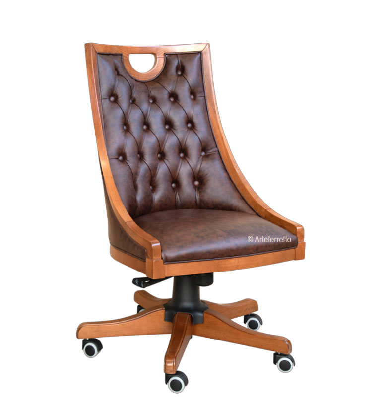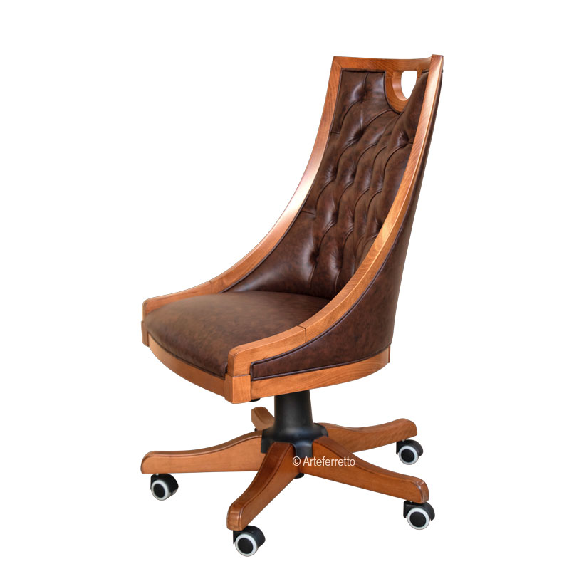 Bürodrehstuhl ohne Armlehnen aus Holz im Stil elegant, klassisch und zeitlos.