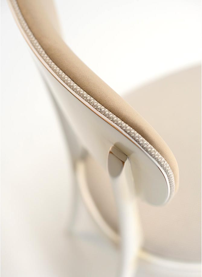 Es ist ein Stuhl, der sich gut an Tische unterschiedlicher Machart und Stile anpasst, da er an Linien erinnert, die heute als klassisch gelten.