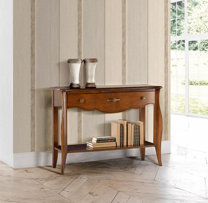 Dieses elegante, geräumige und funktionelle Möbelstück kann in verschiedenen Kontexten eingesetzt werden. Seine mäßig stilisierte Struktur unterstreicht die großzügige Präsenz der natürlichen Holzelemente.