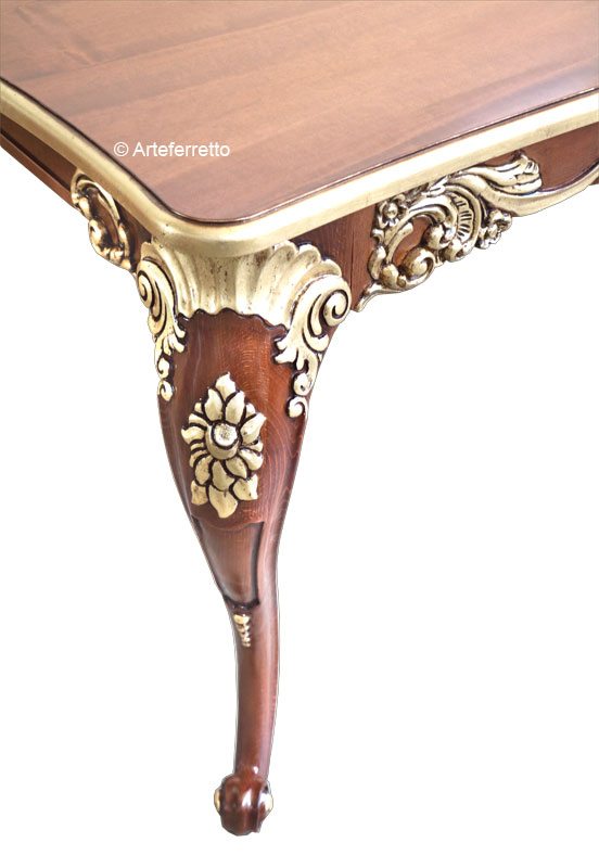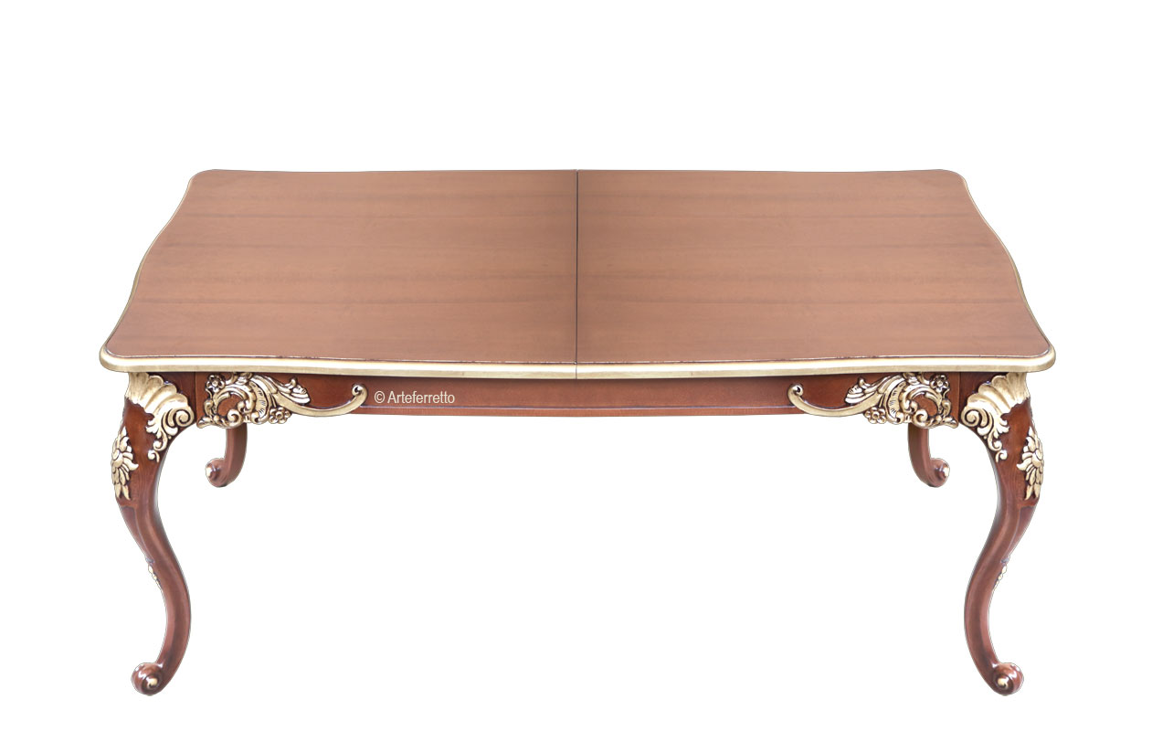 Rechteckiger Tisch, sehr schön und elegant.Er ist durch die Schnitzarbeit verschönt und ist perfekt für ein hochwertiges Wohnzimmer oder Esszimmer.Die Struktur ist stark, die Qualität ist garantiert.Der Tisch ist ausziehbar bis 246 cm durch 2 Tischplatte von 40 cm.Rechteckiger Tisch bei der Lieferung mit Tischplatte schon montiert. Sie müssen nur die Beine installieren, die Montage ist aber einfach.Die Beine sind aus Buchenholz, die Tischplatte ist aus Holzplatten von Nussbaum.Maße:Breite 166 bis 246 cmTiefe 97 cmHöhe 80 cmEinfacher Aufbau!