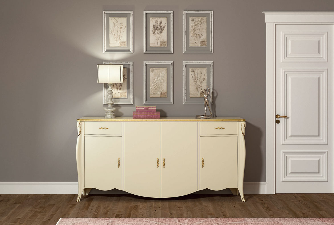 Schöne Anrichte mit 4 Flügeltüren und 2 Schubladen in klassischer Ausführung.