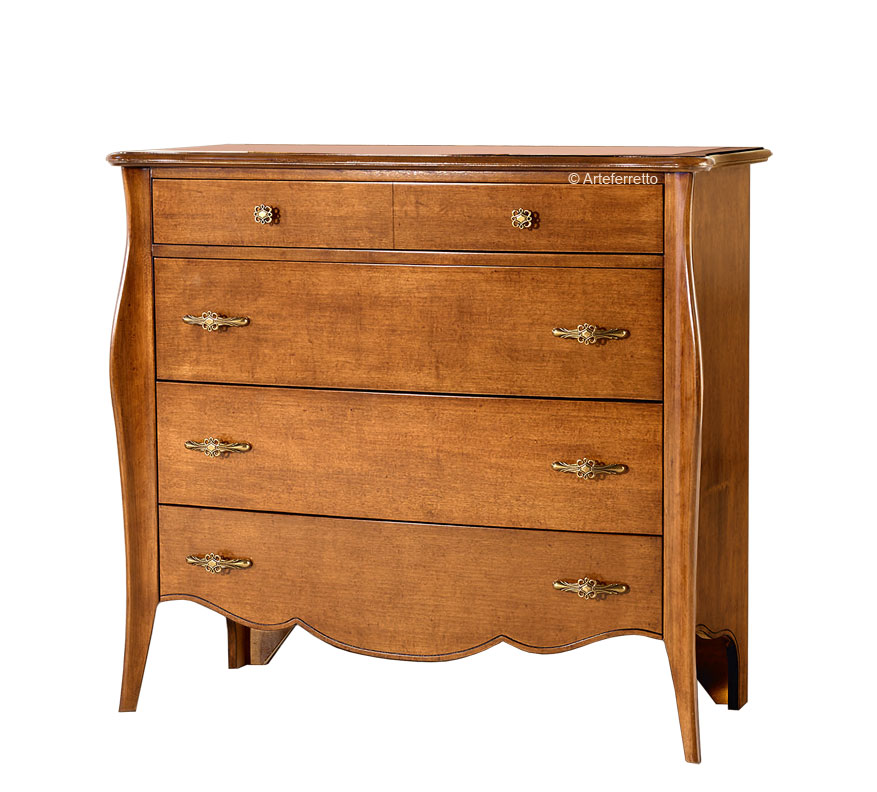 Die Kommode 'Ermes' bietet auch ein beachtliches Fassungsvermögen, denn sie verfügt über drei große Schubladen mit schönen Griffen und eine obere, kleinere Schublade, in der viele Gegenstände untergebracht werden können.