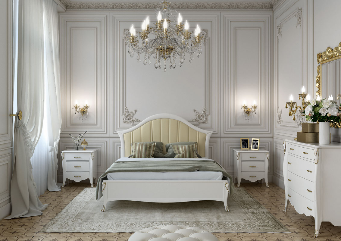 Elegantes Bett mit viel Charme, hier in der lackierten Version vorgeschlagen.