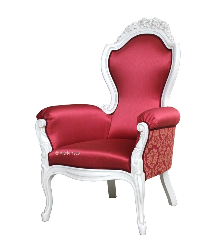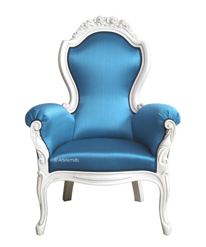 Ein äußerst bequemer Sessel, der eine originelle, schlanke Linie aufweist und gleichzeitig sehr raffinierte Elemente des Klassizismus beibehält.
