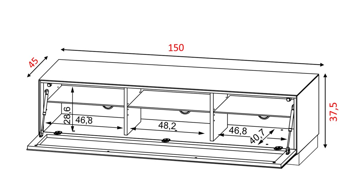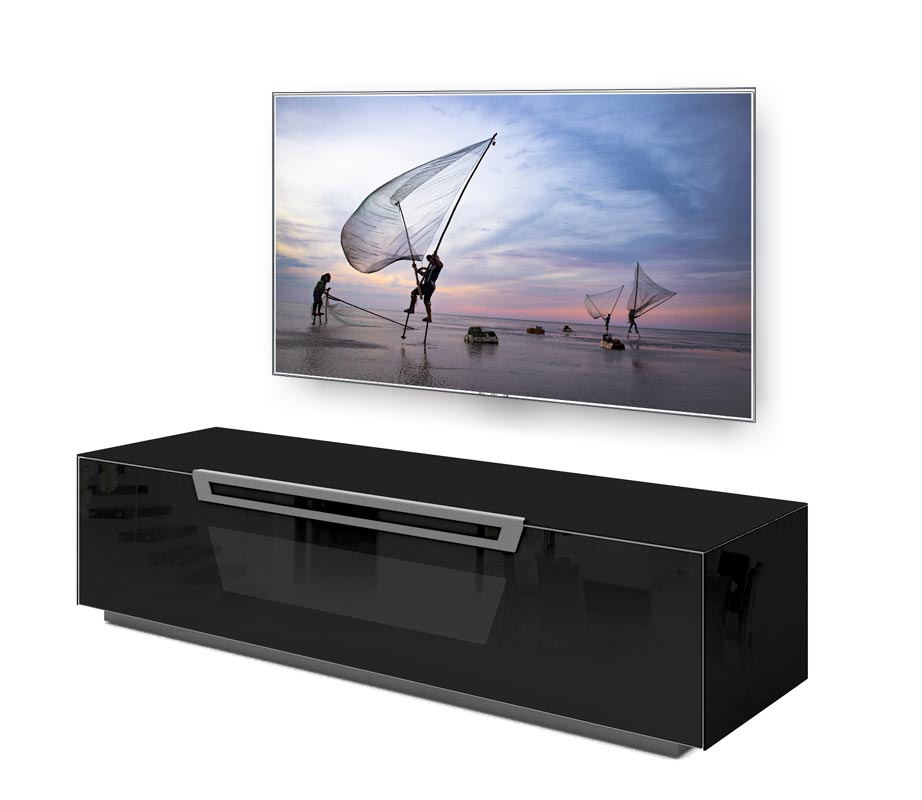 Hier finden verschiedene Geräte, die an den Fernseher angeschlossen werden können, ihren Platz, wobei die Fernbedienung dank der speziellen Konfiguration "Active door" auch bei geschlossener Tür einwandfrei funktioniert.