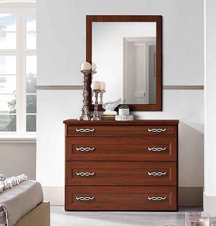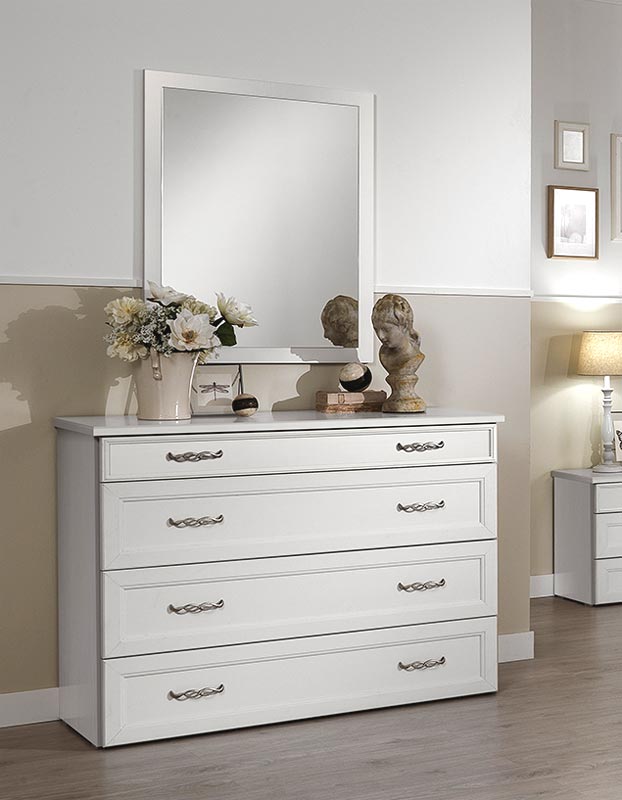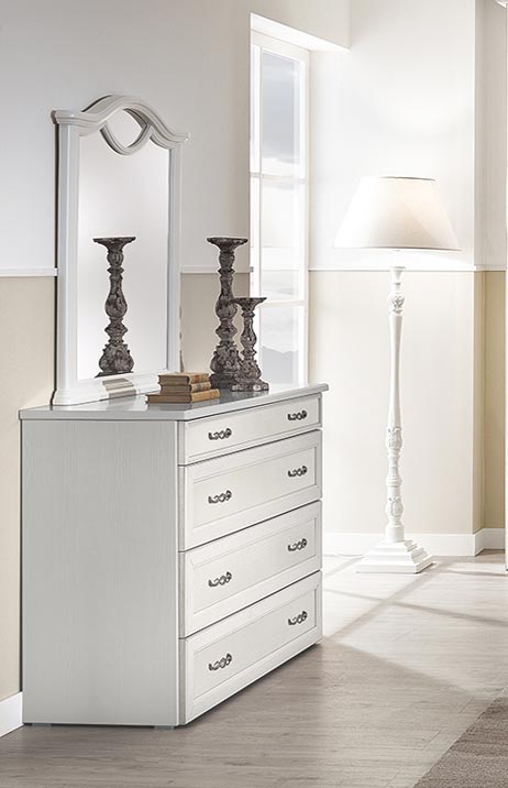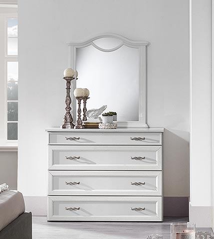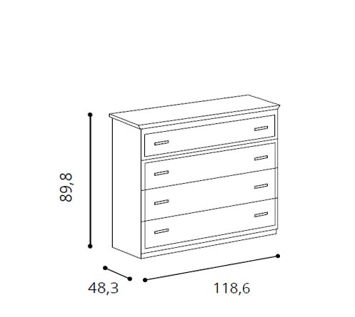 Schlichte und essentielle Kommode mit 4 Schubladen in klassischem Stil, die aber auch in moderneren Umgebungen ihren Platz finden kann. Ideal für Schlafzimmer, Wohnzimmer oder Flur.