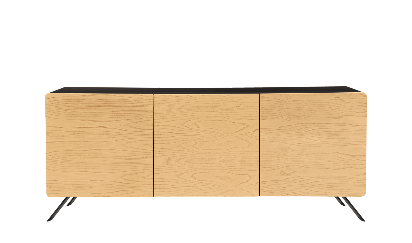 Zwei seitliche Fächer mit Türen, eine praktische Schublade in der Mitte und ein zentrales Fach mit Kabeldurchführungsloch sorgen für maximalen Stauraum. Auf Wunsch können wir zwei zusätzliche Kabellöcher in den Seitenfächern anbringen.