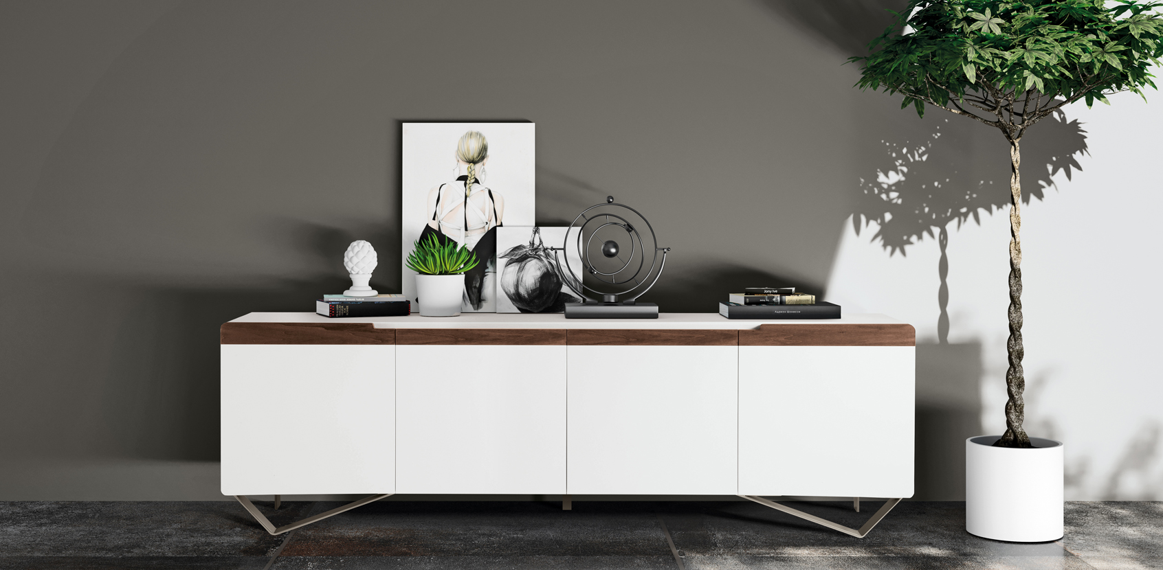 Ein TV-Möbel mit einfachen Linien, die jedoch einen schönen ästhetischen Effekt haben.