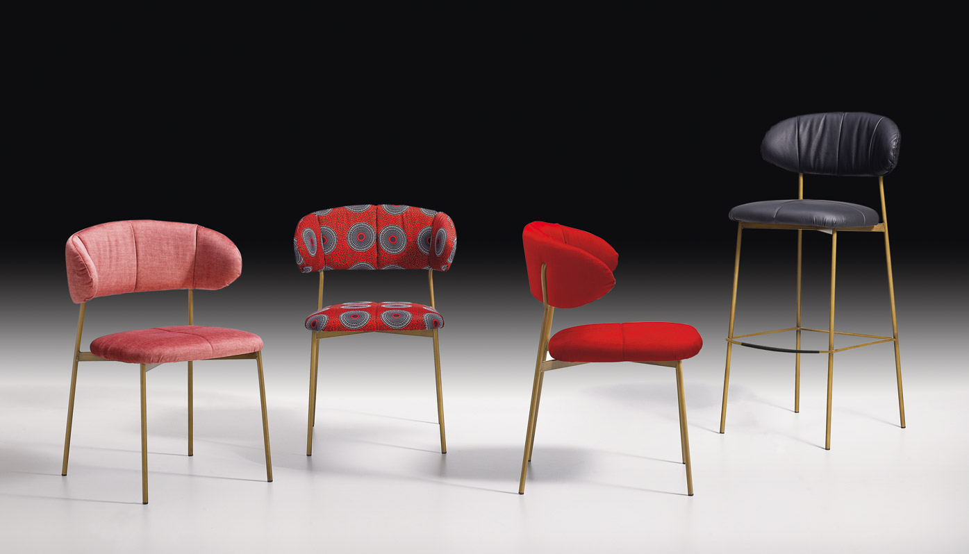 Gepolsterter Stuhl in modernem, zeitgenössischem Stil.